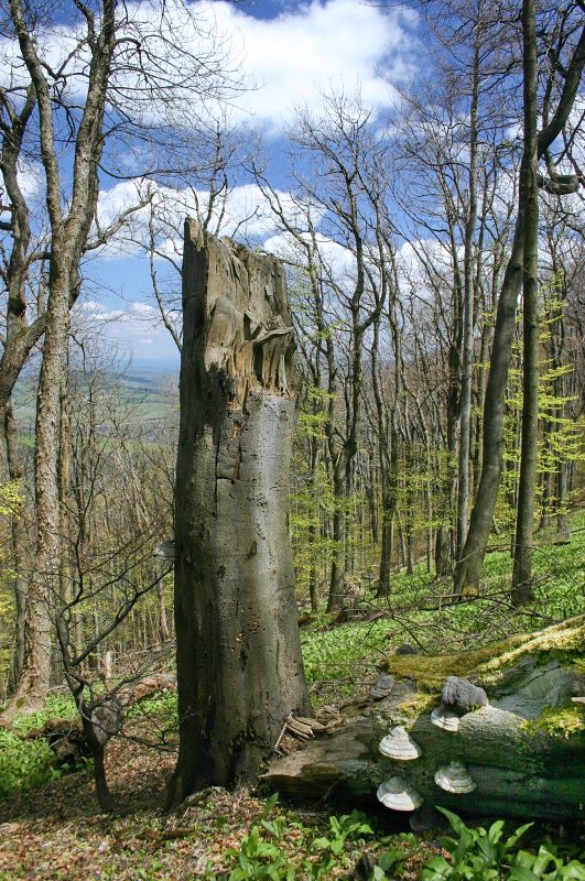 Národní přírodní rezervace JavorinaZákladní údaje: Národní přírodní rezervace Javorina představuje zachovalé lesní porosty pralesovitého charakteru na severozápadních až severovýchodních svazích Velké Javořiny (970 m n. m.), nejvyššího vrcholu Bílých Karpat, a na ně navazující horskou smilkovou louku. Nachází se v Javořinské vrchovině (okrsek Javořinský hřbet), v nadmořské výšce 560 až 940 m n. m, asi 2,5 km jihozápadně od Květné, část obce Strání. Katastrální území Strání, CHKO Bílé Karpaty. Zřízeno vyhláškou Ministerstva životního prostředí č. 264/2007 Sb. ze dne 10. 10. 2007. Evidenční kód ÚSOP: 140. Kategorie IUCN: Ia – přísná přírodní rezervace. Celková rozloha NPR je 165,8910 ha, rozloha vyhlášeného ochranného pásma (vrcholová louka) 17,7585 ha (podle aktuálního plánu péče). Chráněné území bezprostředně navazuje na přírodní rezervaci Veľká Javorina ve Slovenské republice (CHKO Biele Karpaty, rozloha 82,98 ha). Mapy.com. Předmět ochrany: Původní listnaté porosty javoru klenu, buku lesního a jasanu ztepilého v masivu Velké Javořiny vzniklé přirozenou cestou, tvořené především květnatými bučinami asociace Dentario enneaphylli-Fagetum a suťovými lesy svazu Tilio-Acerion, mající ve své vrcholové části pralesovitý charakter. Cíl ochrany: Zachování významného reprezentativního krajinného celku s mimořádnými přírodními a kulturními hodnotami. Konkrétními managementovými postupy zlepšovat ekologickou stabilitu ekosystémů rezervace takovým způsobem, aby mohly být ponechány samovolnému vývoji. Cílem je rovněž ochrana populací chráněných a ohrožených druhů rostlin i živočichů. Geologie, půdní poměry: Geologický podklad území je tvořen sedimenty javorinského souvrství (svrchní křída – spodní paleocén) vlárského vývoje bělokarpatské jednotky magurské skupiny příkrovů. V drobně až středně rytmických flyšových vrstvách převažují modrošedé a hnědošedé vápnité pískovce nad šedými a zelenošedými prachovými jílovci. Na eluviu a kamenito-hlinitých svahovinách se vyvinuly středně těžké kambizemě typické až dystrické, vykazují vyšší obsah skeletu, přesto jsou živné až obohacené, značně humózní. V nejvyšší vrcholové části hřbetu Velké Javořiny jsou příkré svahy, převážně severní až severozápadní orientace, rozčleněné sběrnými mísami zdrojnic Veličky (povodí Moravy) a Svinárského potoka (povodí Váhu). Flóra a vegetace: Na mírnějších svazích pralesovité části rezervace převládají květnaté bučiny asociace Dentario enneaphylli-Fagetum, na prudších sklonech suťové javořiny asociace Lunario-Aceretum. Ve stromovém patře je dominantní buk lesní (Fagus sylvatica), dále jsou zastoupeny jasan ztepilý (Fraxinus excelsior) a javor klen (Acer pseudoplatanus), v nižších polohách také javor mléč (Acer platanoides). V jarním aspektu místy dominuje česnek medvědí (Allium ursinum), na většině území je hojná sněženka podsněžník (Galanthus nivalis), roztroušeně se vyskytuje lilie zlatohlávek (Lilium martagon) a oměj vlčí mor (Aconitum lycoctonum). V bylinném patře jsou dále zastoupeny charakteristické druhy květnatých bučin jako např. árón východní (Arum cylindraceum), bažanka vytrvalá (Mercurialis perennsis), dymnivka dutá (Corydalis cava), dymnivka plná (Corydalis solida), kokořík mnohokvětý (Polygonatum multiflorum), kokořík přeslenitý (Polygonatum verticillatum), kozlík výběžkatý (Valeriana excelsa), křivatec žlutý (Gagea lutea), kyčelnice cibulkonosná (Dentaria bulbifera), kyčelnice devítilistá (Dentaria enneaphyllos), měsíčnice vytrvalá (Lunaria rediviva), mléčivec alpský (Cicerbita alpina), pitulník horský (Galeobdolon montanum), plicník lékařský (Pulmonaria officinalis), plicník tmavý (Pulmonaria obscura), popenec chlupatý (Glechoma hirsuta), prvosenka vyšší (Primula elatior), pryšec mandloňovitý (Euphorbia amygdaloides), rozrazil horský (Veronica montana), samorostlík klasnatý (Actaea spicata), silenka dvoudomá (Silene dioica), svízel vonný (Galium odoratum), udatna lesní (Aruncus vulgaris) a zapalice žluťuchovitá (Isopyrum thalictroides). V lesních porostech je zastoupeno několik druhů kapraďorostů, např. kapraď samec (Dryopteris filix-mas), papratka samičí (Athyrium filix-femina), bukovník kapraďovitý (Gymnocarpium dryopteris), kapraď rozložená (Dryopteris dilatata), vzácně kapraď podobná (Dryopteris expansa) a kapraď osténkatá (Dryopteris carthusiana), ve stinných a vlhkých žlebech se vyskytuje kapradina laločnatá (Polystichum aculeatum), na skalních výchozech vzácně sleziník červený tmavohnědý (Asplenium trichomanes subsp. quadrivalens) a puchýřník křehký (Cystopteris fragilis). V minulosti zde byl nalezen kriticky ohrožený lišejník Thelopsis rubella, vzácný druh starých zachovalých bučin. Vrcholová louka na Velké Javořině v ochranném pásmu NPR Javorina je jediným typem horské smilkové louky v Bílých Karpatech. Jedná se o přechodový typ mezi karpatskými psinečkovými pastvinami svazu Cynosurion cristati, asociace Anthoxantho odorati-Agrostietum tenuis a mezofilními podhorskými a horskými smilkovými trávníky svazu Violion caninae, asociace Festuco capilatae-Nardetum strictae. Dříve býval na louce hojný prstnatec bezový (Dactylorhiza sambucina), dále se zde vyskytoval např. rudohlávek jehlancovitý (Anacamptis pyramidalis ), vemeníček zelený (Coeloglossum viride), hořeček žlutavý pravý (Gentianella lutescens subsp. lutescens) i hořeček žlutavý karpatský (Gentianella lutescens subsp. carpatica). Po přihnojování louky minerálními hnojivy na začátku 90. let 20. stol. byly tyto chráněné a ohrožené druhy bohužel témě